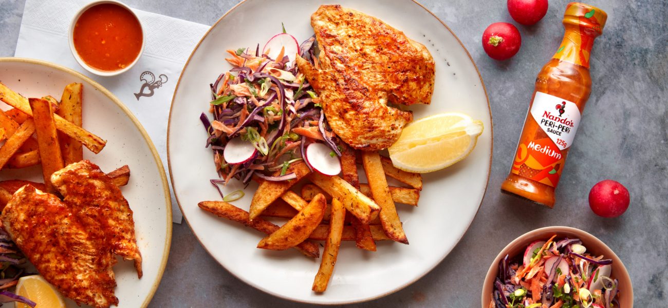 Made with PERi-PERi fans at heart, the menu will feature two of Nando’s most popular dishes, including the restaurant’s iconic PERi-PERi butterfly chicken, chips & fino slaw and ¼ chicken legs, macho peas & sweet mash.