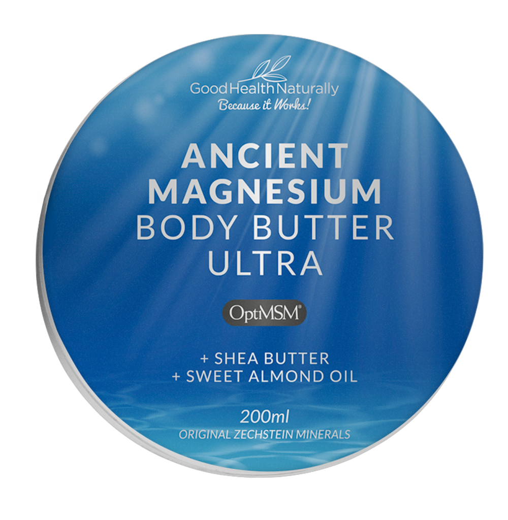 Good Health Naturally’s gold-winning Ancient Magnesium Body Butter Ultra with OptiMSM turns everyday body care into a little luxury. This rich, creamy butter blends magnesium from the pristine Zechstein seabed with shea butter and sweet almond oil, crafted with clean, natural ingredients. The topical magnesium formula melts into skin, leaving it soft, smooth, and nourished, with a bright lemongrass scent. It is the perfect way to support your daily magnesium intake, and is vegan, too.