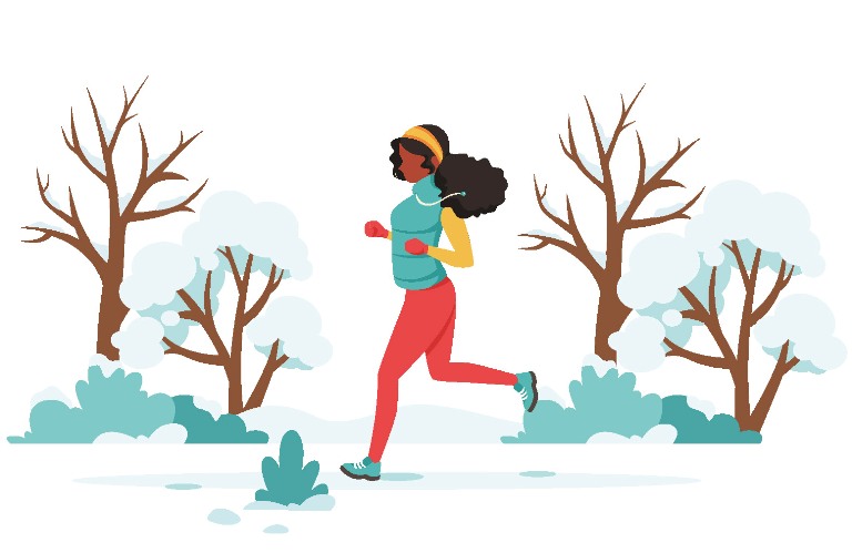 Okay, warm up done – what about clothing? The best plan of action is to layer up and be prepared, which means covering your extremities, according to the experts. This might look like wearing a headband to cover your ears, thin gloves and good-quality socks to keep your circulation in check. And if you’re feeling less-than-motivated to get those running shoes on? Cecilia recommends making it a social occasion. “Exercise can become a lot more fun if you involve family and friends. Instead of meeting a friend for lunch or coffee, consider going for a walk or jog or park workout together. All you need to get a fantastic workout is a safe, well-lit park, track, neighbourhood or walking trail and your bodyweight. No gym membership required!”